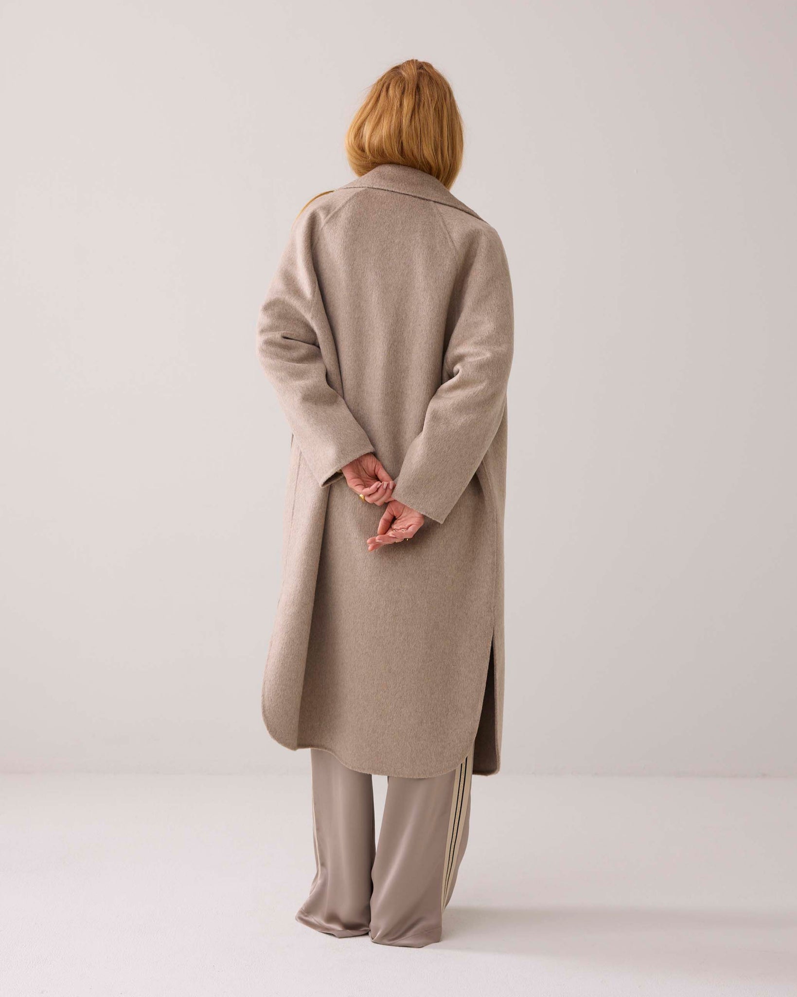 Oversized double breasted mantel van Summum met afgeronde revers en splitten.