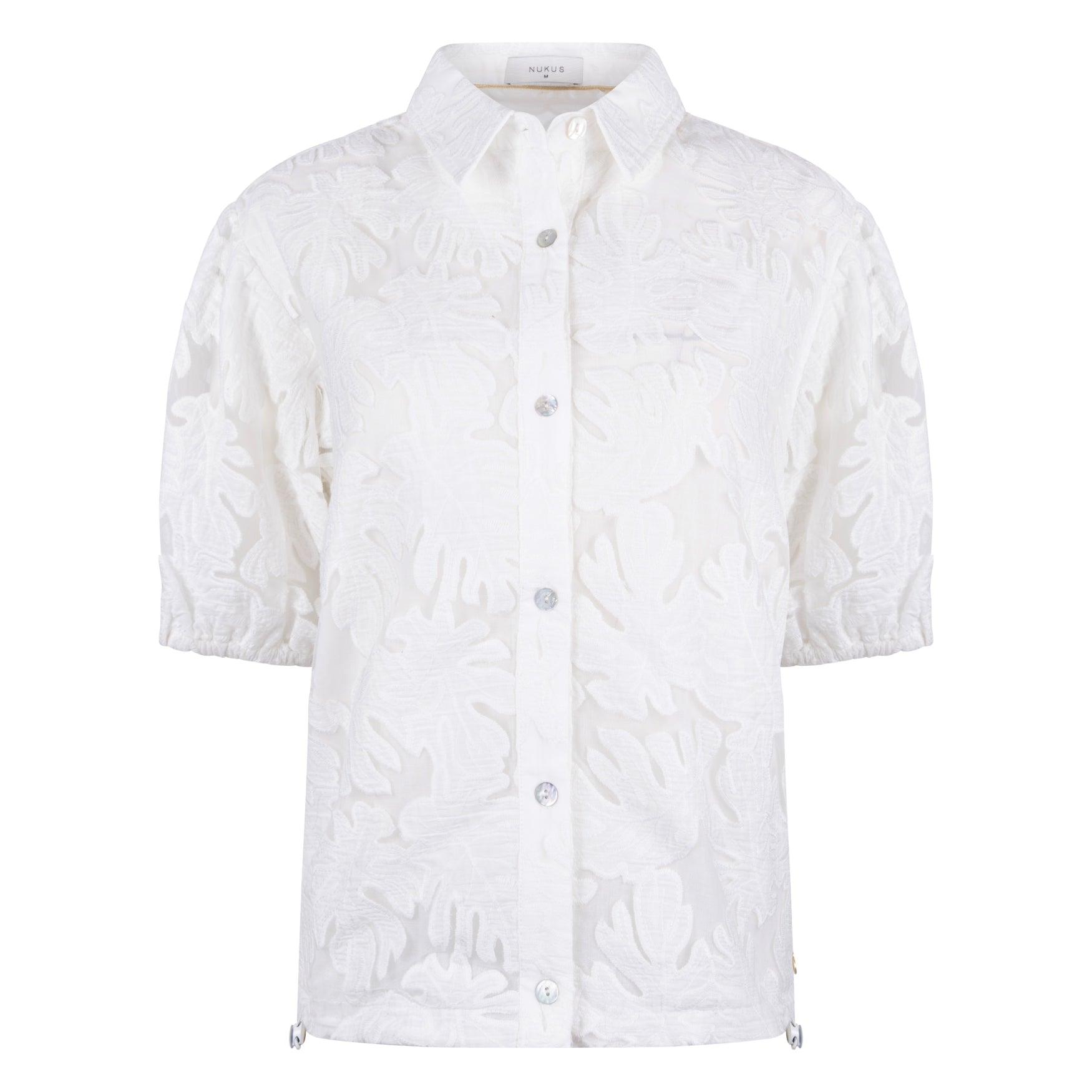 Berit blouse van Nukus is een lichte vrouwelijke blouse met een subtiele bloemprint in embroidery. NKS02137