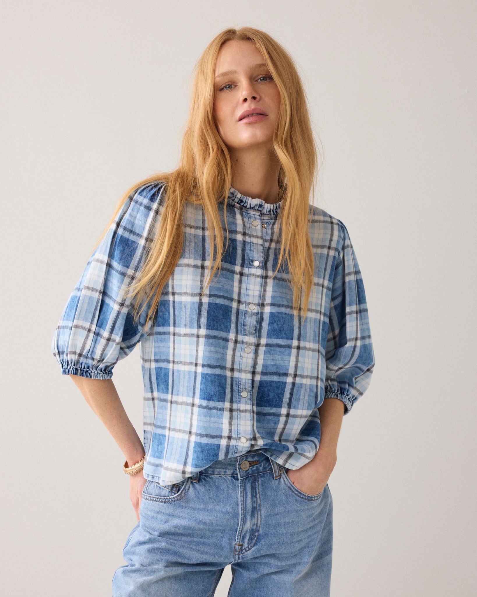 Geruite blouse met driekwart ballonmouw van Summum, gemaakt van 100% katoen.
